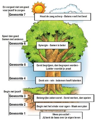Een boom met wortels, een stam en kruin staat symbool voor de 7 gewoonten.